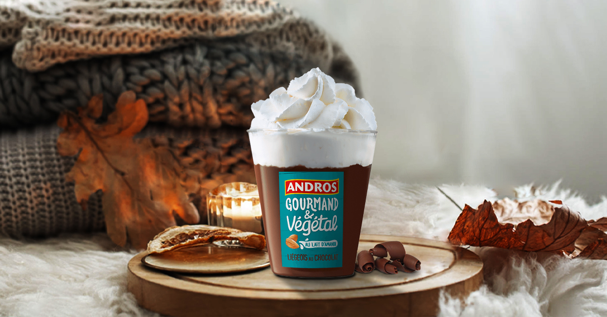 Each month, following the briefs provided by Andros Gourmand & Végétal, I create bespoke visuals on Photoshop, tailored to align with the brand’s vision and seasonal trends. For example, October visuals often embrace an autumnal theme, such as falling leaves, to reflect the season. Each visual is entirely crafted by me from start to finish, 100% original and created without the use of AI.